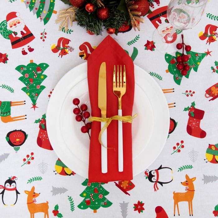 Скатерть "Рождественские Елочки" 110х144 см, 100% хлопок, 164 г/м2