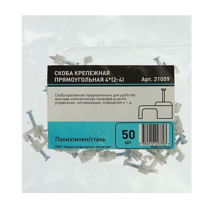 Скоба крепежная "Передовик", прямая, 4х(2-4) мм, с гвоздем, в упаковке 50 шт.