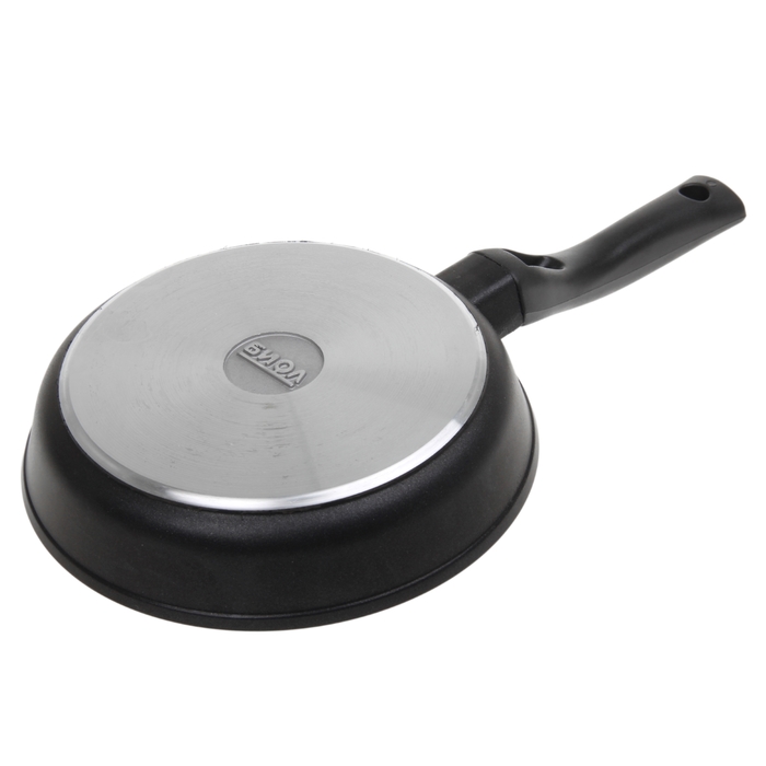Консервативный дизайн и насыщенный черный цвет придают сковороде солидный внешний вид. Антипригарное покрытие долговечно и приятно на ощупь. Широкая ручка удобно лежит в руке, не нагревается при использовании и не скользит.