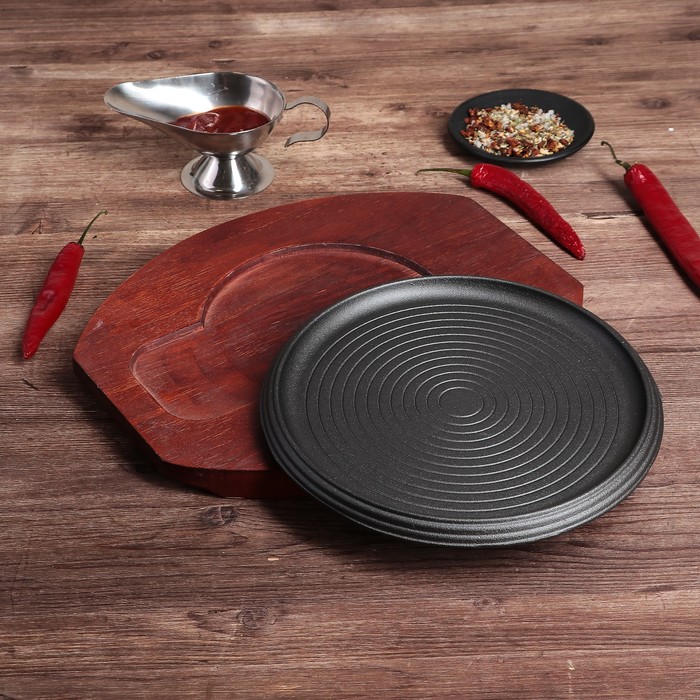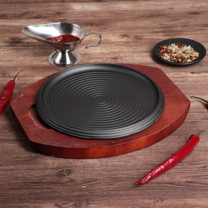 Сковорода 23 см "Круг. Спираль", на деревянной подставке