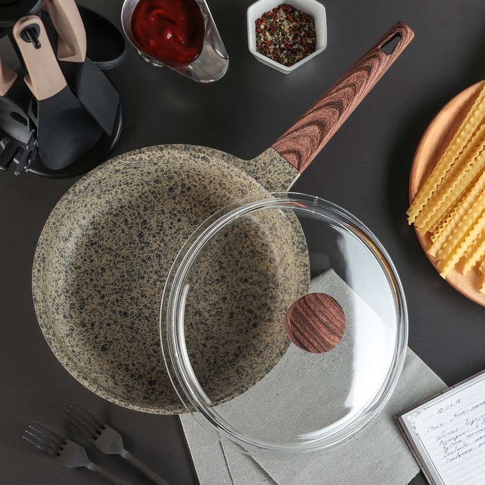 Сковорода 24х5,5 см "Скат. Индукция", стеклянная крышка, цвет сахара