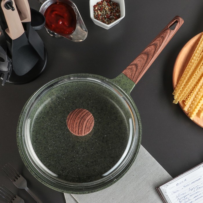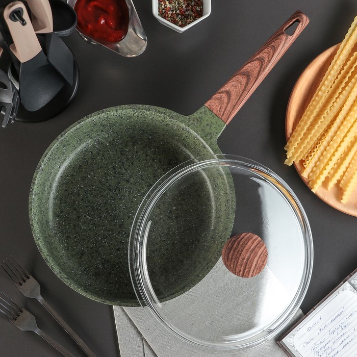 Сковорода 24х5,5 см "Скат. Индукция", стеклянная крышка, цвет зелёный