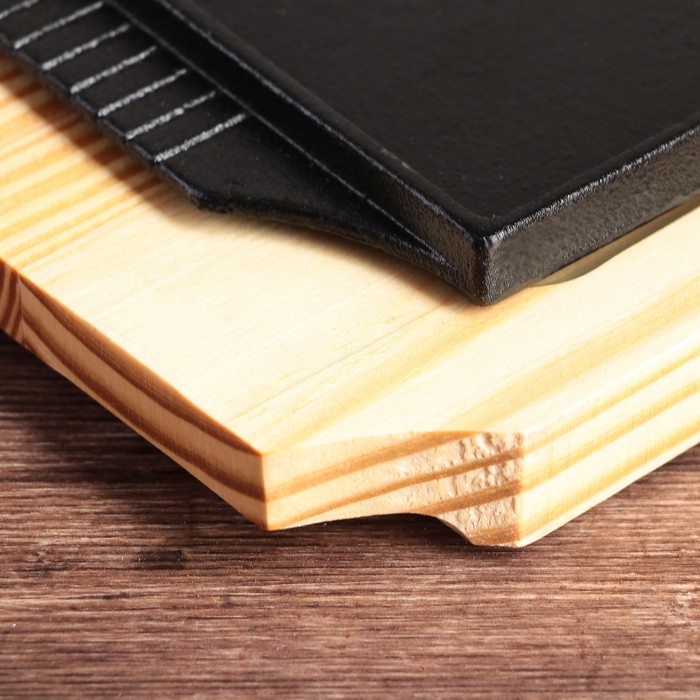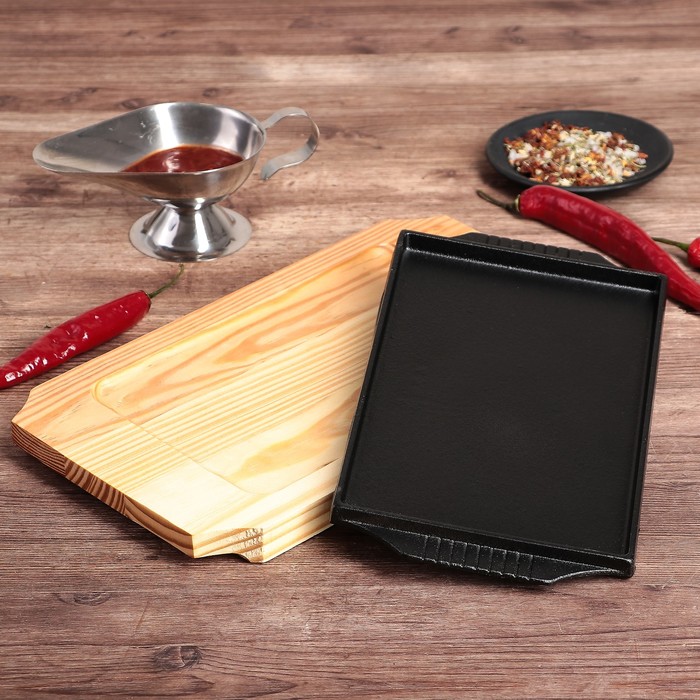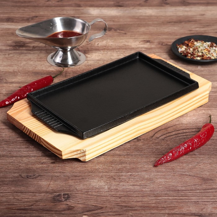 Сковорода 28,5х17х3 см "Прямоугольник", с ручками, на деревянной подставке