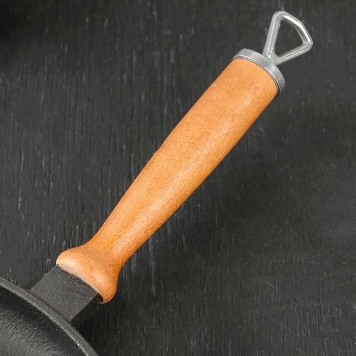Сковорода чугунная блинная 26х2 см, деревянная ручка