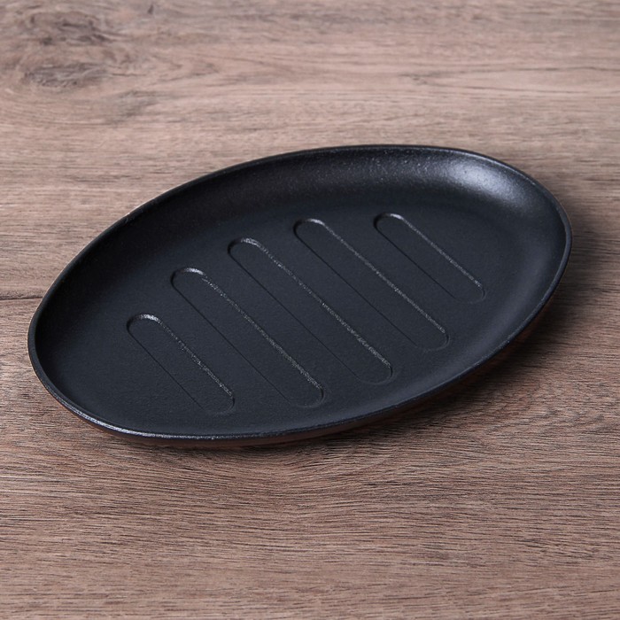 Сковорода на деревянной подставке "Овал. Гриль" 22,6х15,6 см