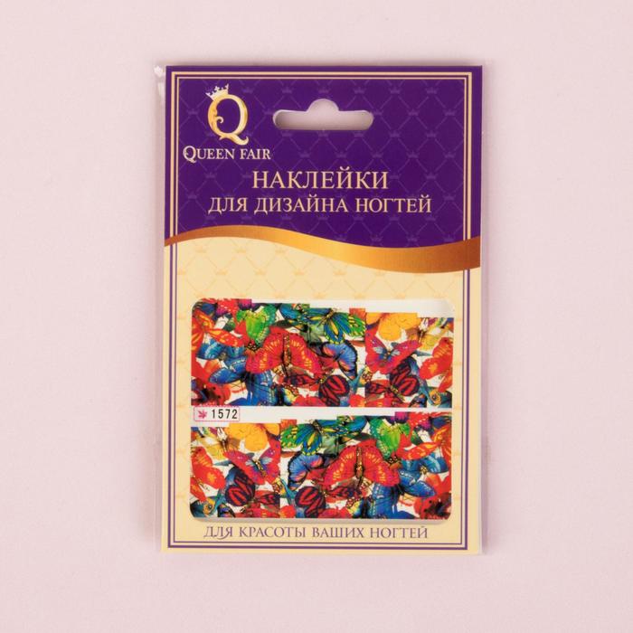 Слайдер-дизайн для ногтей "Бабочки", с блёстками, разноцветный