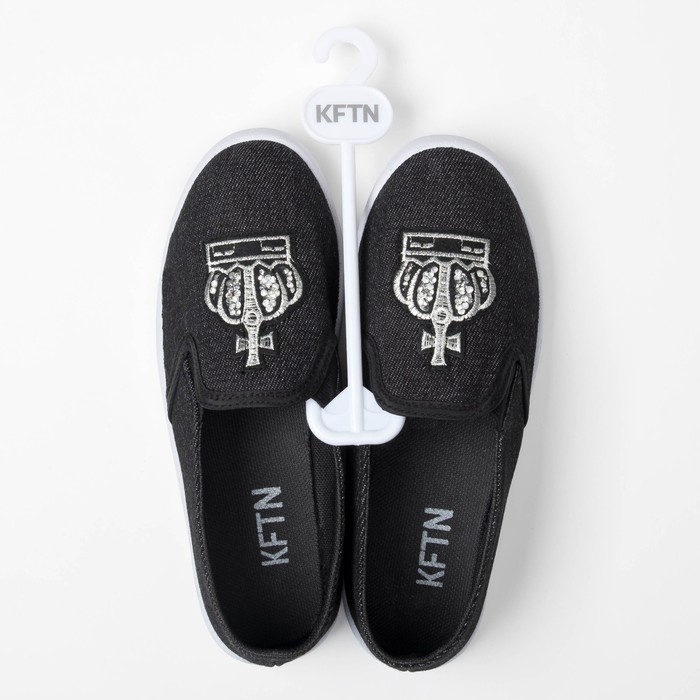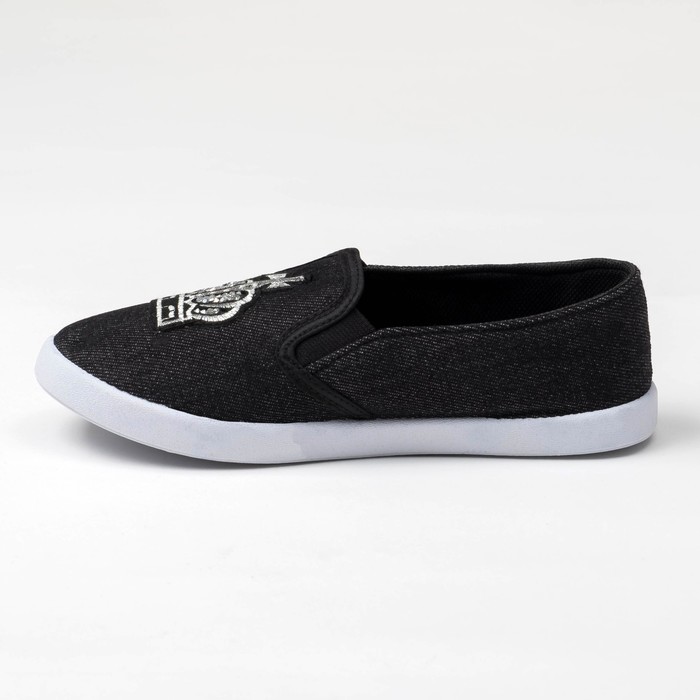 Слипоны "KAFTAN" женские с нашивкой "Корона", черная джинса, 36 р-р