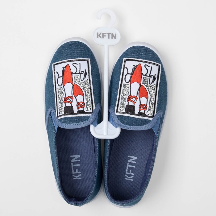 Слипоны "KAFTAN" женские с нашивкой "Туфли", голубая джинса, 40 р-р