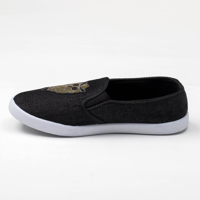 Слипоны "KAFTAN"женские с нашивкой "Сова", черная джинса, 36 р-р