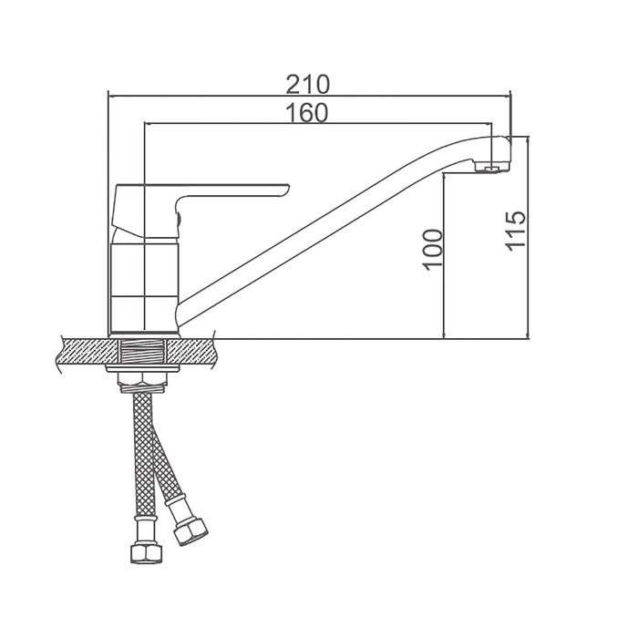 Смеситель для кухни Accoona A4266P, с гайкой, гусак короткий, силумин, цвет оранжевый