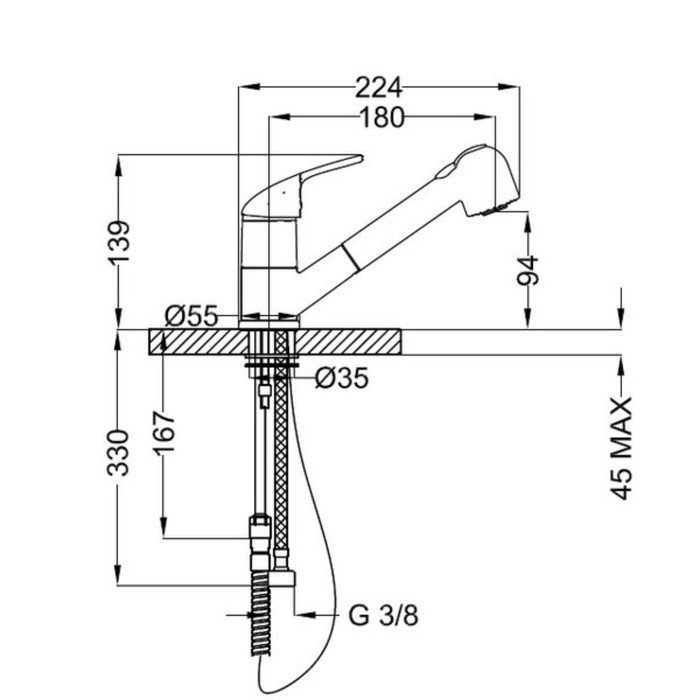 Смеситель для кухни Zipponi ARA, с вытяжным изливом, цвет хром