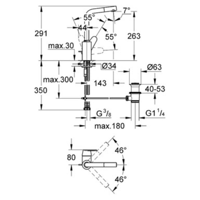 Смеситель для раковины GROHE Eurodisc Cosmopolitan с высоким изливом 23054002