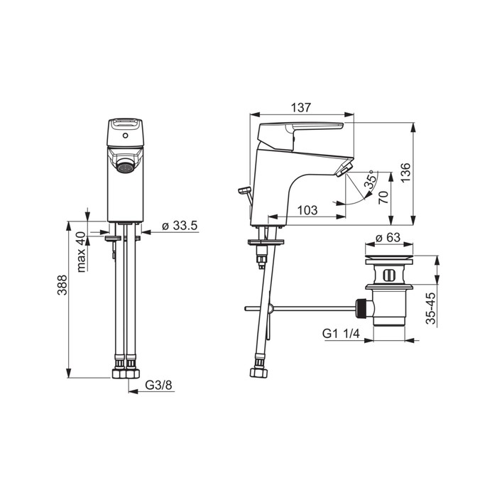 | Длина излива, мм | 103 |