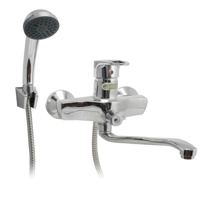 Смеситель ванно-душевой одноручный Juguni JGN0122 с металлическим шлангом, хром.лейкой, L-излив 350 мм, картридж 40 мм