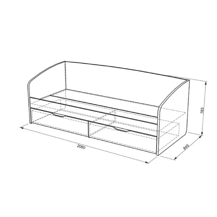 Софа подойдёт для любого интерьера квартиры. Данная модель состоит из спального места и ящиков для белья. Конструкция изготовлена из экологически чистого материала — ЛДСП, а кромки покрыты ПВХ.
