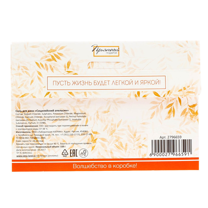 Соль для ванн "Для особенной" с ароматом сицилийского апельсина,150 г