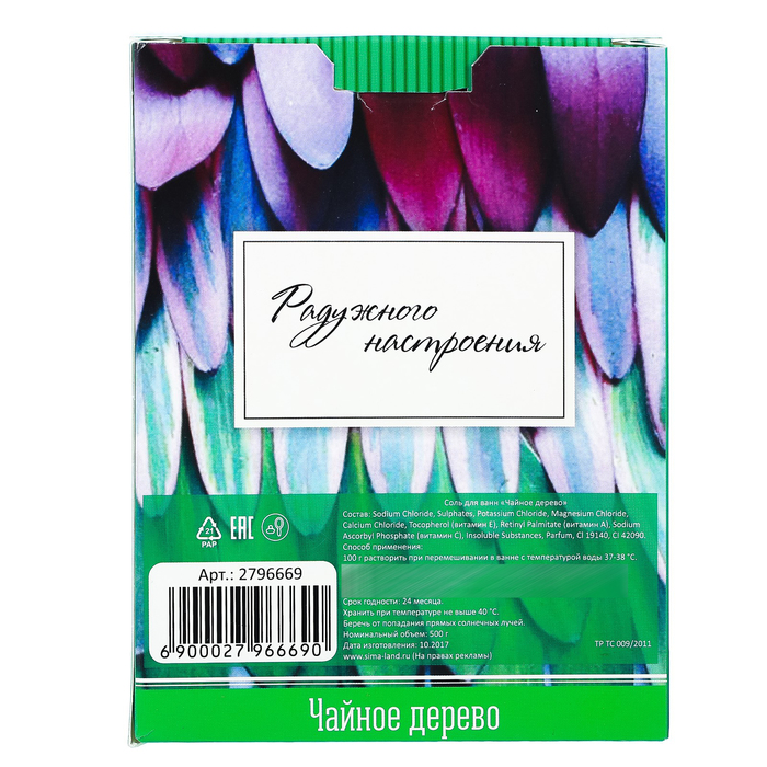 Соль для ванн "Любимой сестре" с ароматом чайного дерева, 500 г