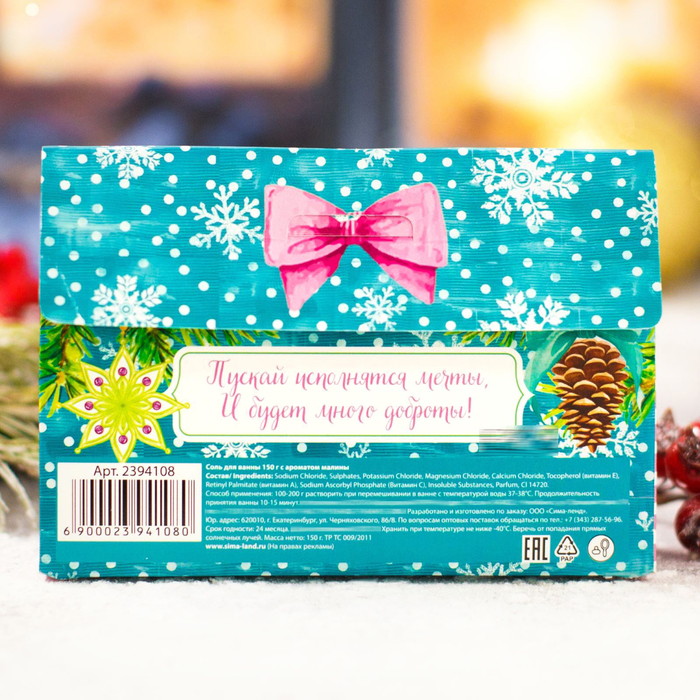 Соль для ванн "Пусть все мечты исполнятся!" с ароматом малины, 150 г