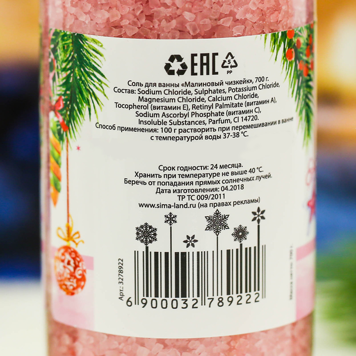 Соль для ванн "Тепла и уюта" с ароматом малинового чизкейка, 700 г