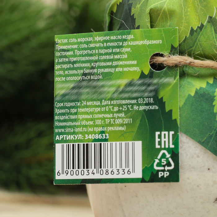 Соль в баню с увлажняющим комплексом "Сибирский кедр", 300 г