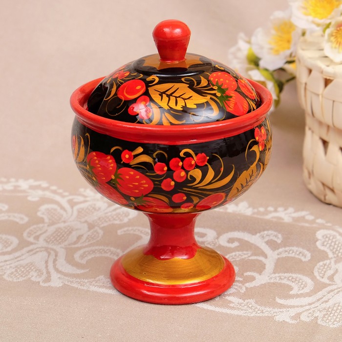 Солонка «Земляничка», на ножке, 11х11 см, 200 мл, хохлома