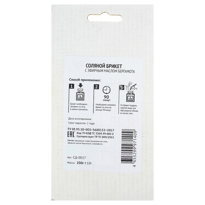Соляной брикет мини с эфирным маслом бергамота, 10х4,5х2,5см, 0,2 кг