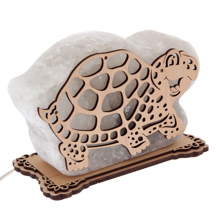 Соляной светильник "Черепаха" большой 20х14х6 см, деревянный декор, цельный кристалл