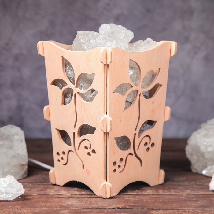 Соляной светильник "Цветочек", корзина, 10 х 10 х 15 см, 2 кг, белый, деревянный декор