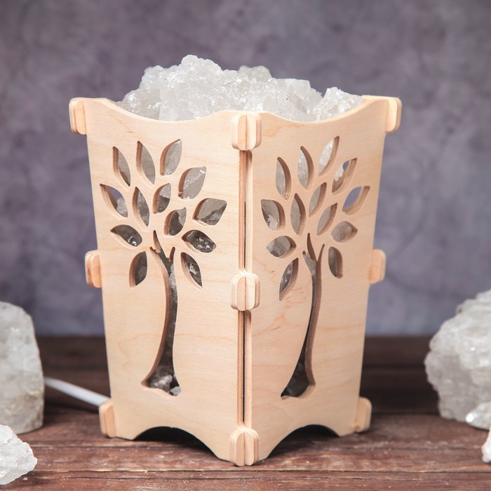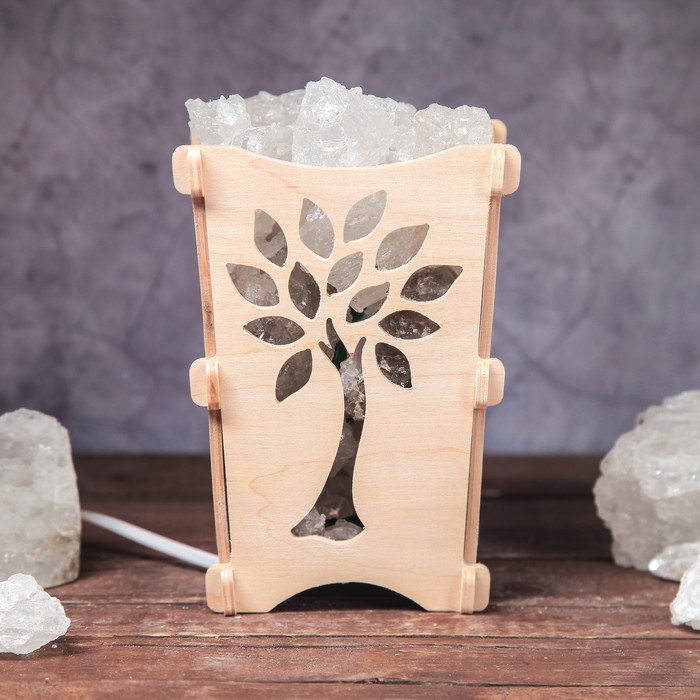 Соляной светильник "Дерево", корзина, 10 х 10 х 15 см, 2 кг, белый, деревянный декор