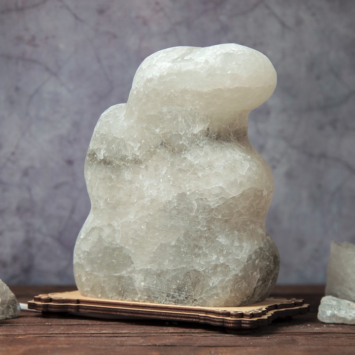 Соляной светильник "Гном с ромашкой", фигурный, деревянный декор, цельный кристалл