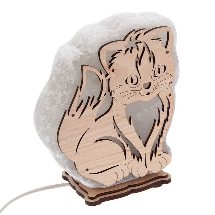 Соляной светильник "Кот" большой 19 х 15 х 6 см, деревянный декор