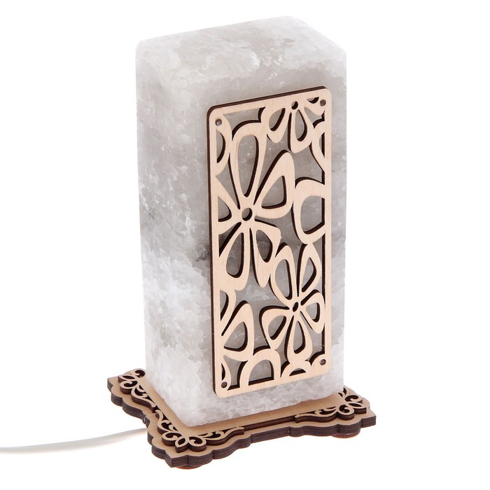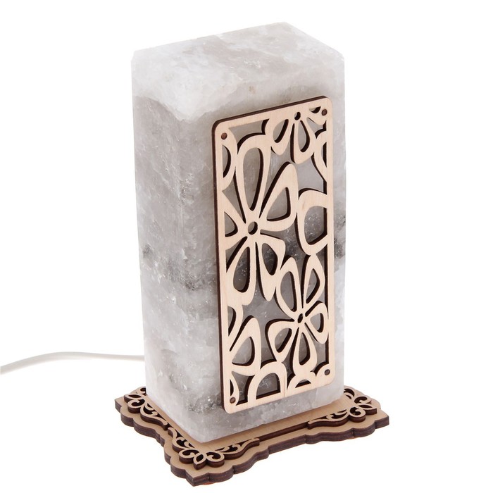 Соляной светильник "Прямоугольник" с узором №3 16х8х6 см, деревянный декор, цельный кристалл