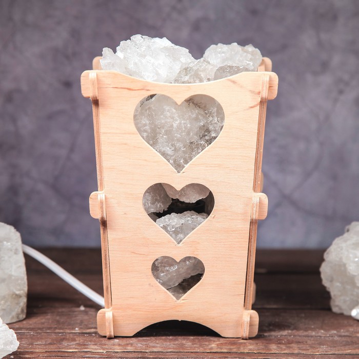 Соляной светильник "Сердечки", корзина, 10 х 10 х 15 см, 2 кг, белый, деревянный декор