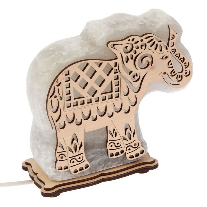 Соляной светильник "Слон" большой 19 х 17 х 6 см, деревянный декор, цельный кристалл