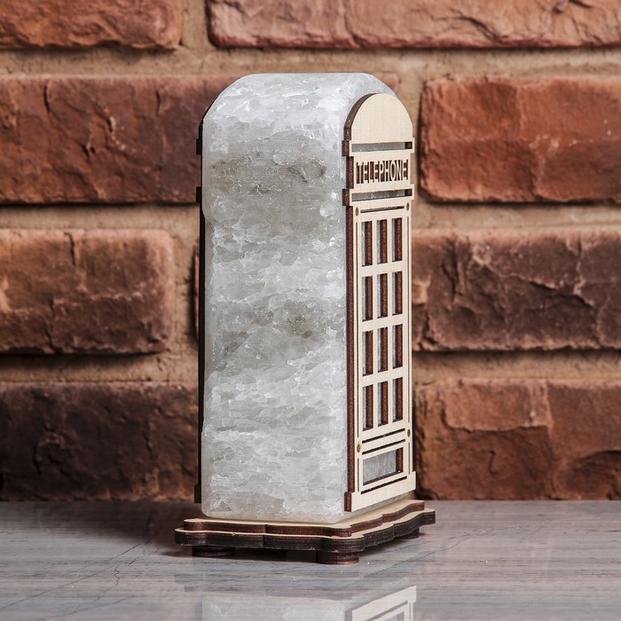 Соляной светильник "Телефонная будка", деревянный декор, цельный кристалл, 11 х 20 х 7 см