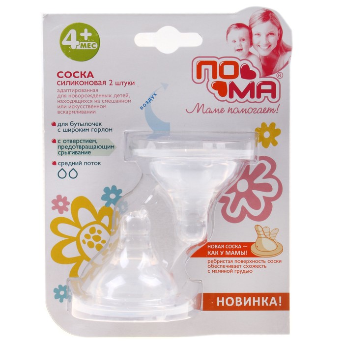 Соски силиконовые классические, широкое горло, средний поток, от 4 мес., набор 2 шт.