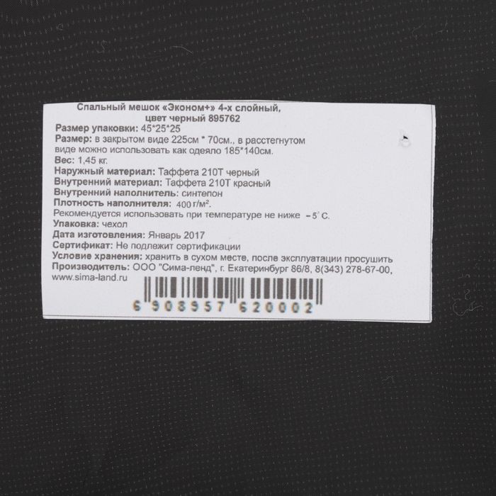 Если вы собираетесь в поход с ночёвкой, то спальный мешок — первый предмет, о котором нужно подумать заранее. С ним вы защитите себя от переохлаждения, оградите от соседства с насекомыми и мелкими грызунами, обеспечивая комфортный и здоровый сон. Модель «Эко» состоит из прочного, не продуваемого ветром материала таффета, и наполнителя синтепон плотностью 400 г/м², который сохранит и поддержит температуру внутри изделия.