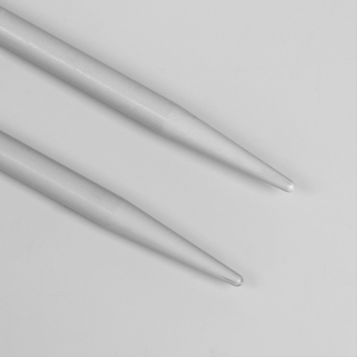 Круговые спицы представляют собой две металлические части, соединённые друг с другом тросиком. Инструмент незаменим при вязании полотна по кругу. С его помощью получаются изделия без дополнительных швов: шапки, рукава и горловины.