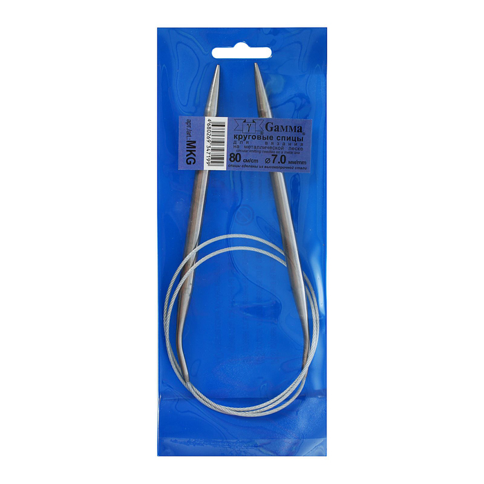 Спицы для вязания, круговые, с металлической леской, d=7мм, 80см
