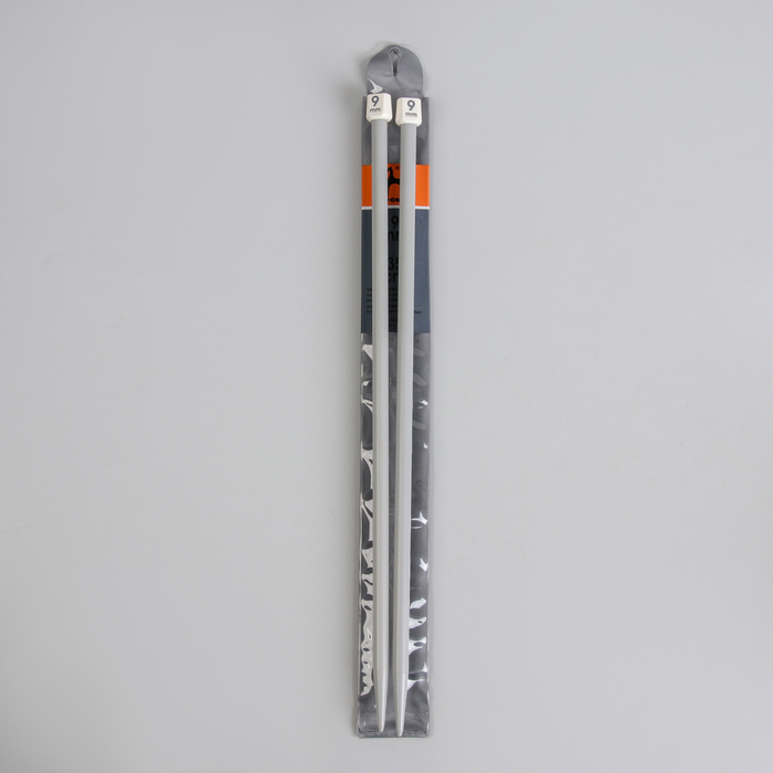 Спицы для вязания прямые, наконечник, d=9мм, 35 см, 2шт
