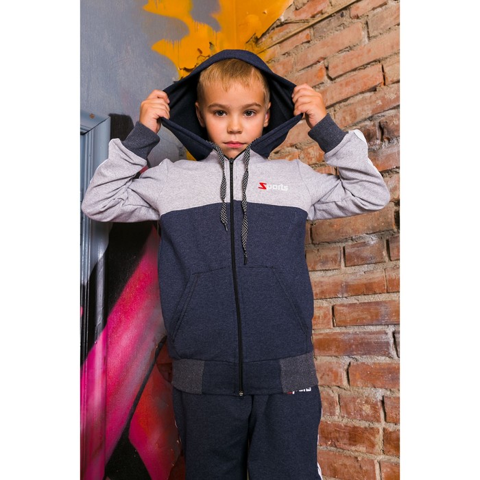 Спортивный костюм для мальчика, синий/св-серый, рост 116-122 (30)
