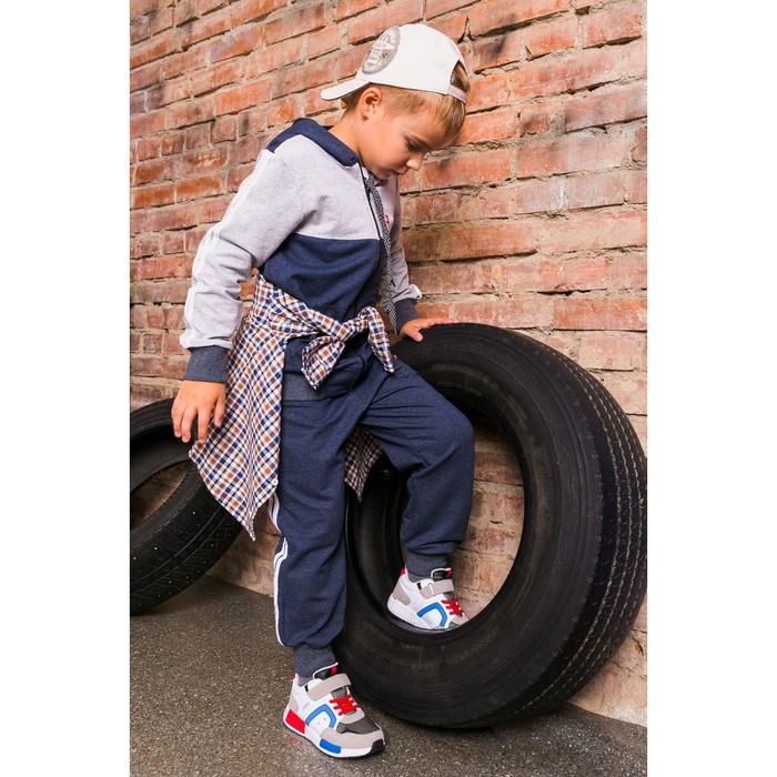 Спортивный костюм для мальчика, синий/св-серый, рост 128-134 (34)