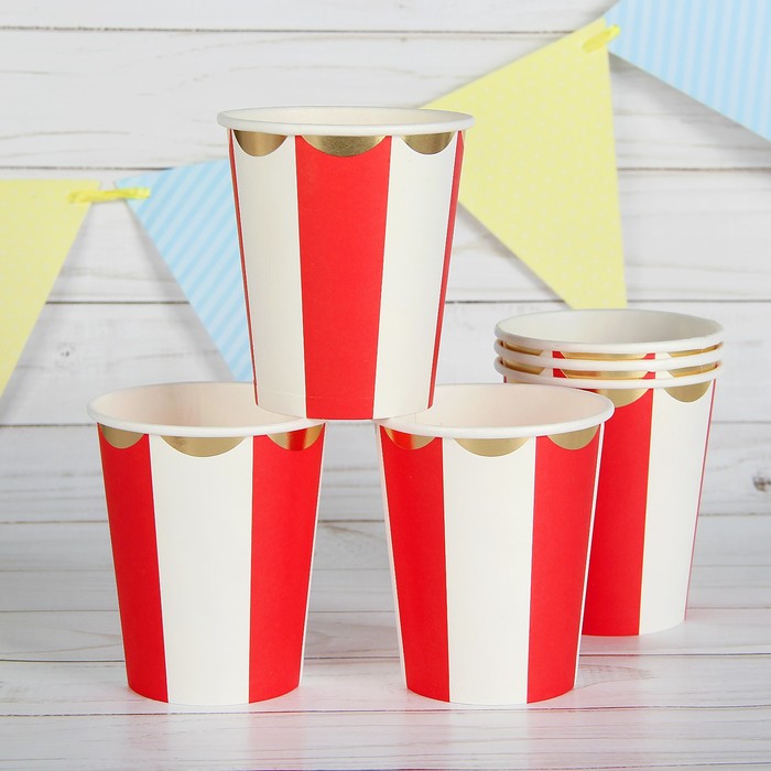Стакан бумажный "Полоска" цвет красный и белый (набор 6 шт)