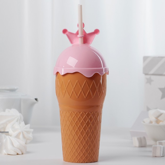Стакан с трубочкой и крышкой "Корона" 9,5х9,5х18,5. Цвета МИКС