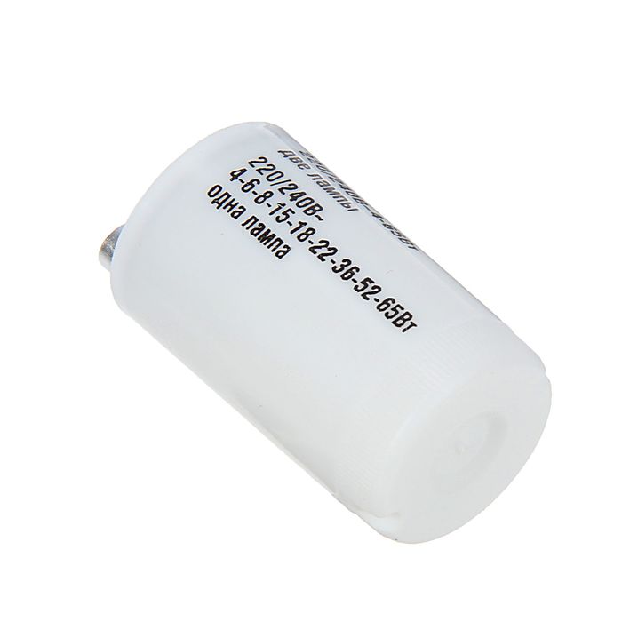 Стартер представляет собой стеклянный баллон, наполненный инертным газом. Изделие обеспечивает быстрое и надёжное зажигание люминесцентных ламп.