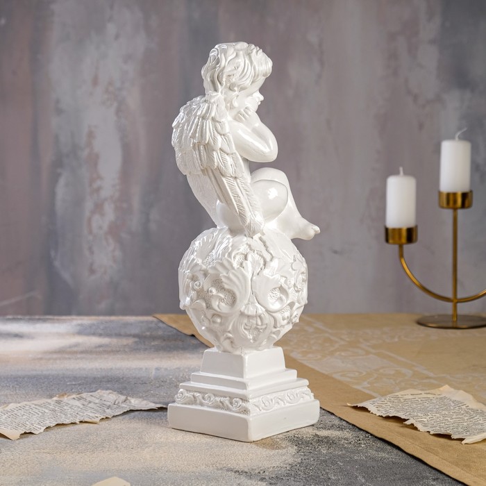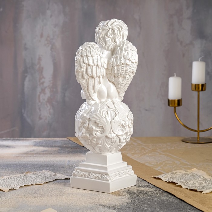 Статуэтка "Ангел на шаре" с узором, большой, бело-золотая