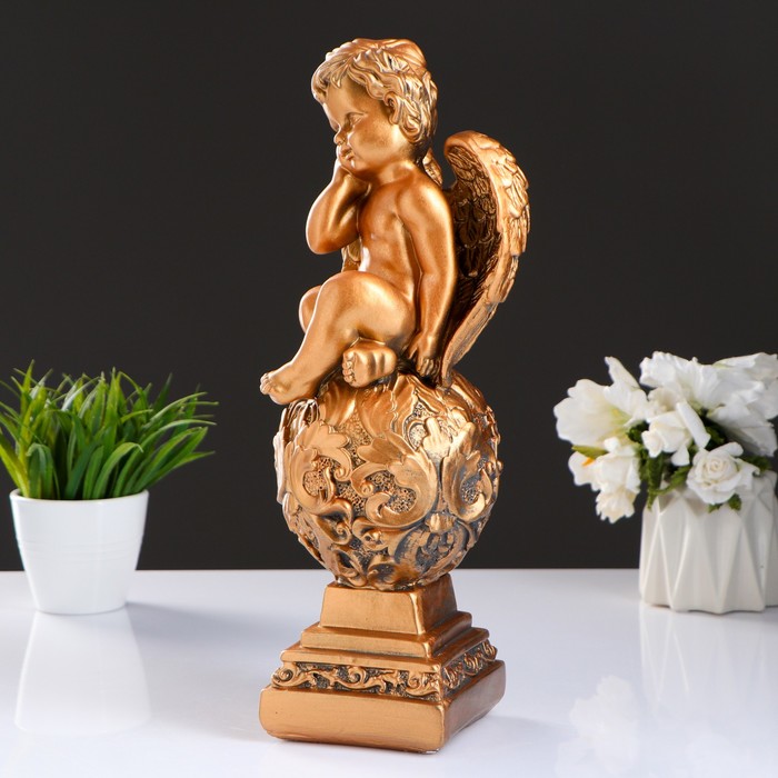 Статуэтка «Ангел на шаре» с узором, цвет бронзовый, МИКС 12 × 12 × 36 см