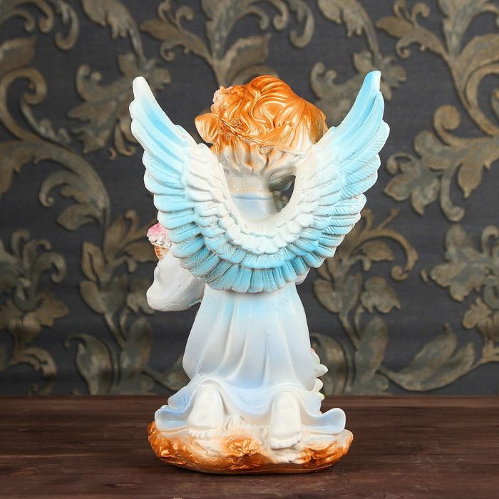 Статуэтка «Ангел с чашей цветов», белый/золото 18 × 19 × 31 см