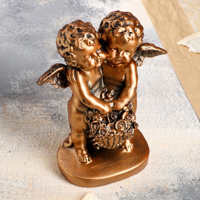 Статуэтка "Пара ангелов с корзиной цветов", бронзовый