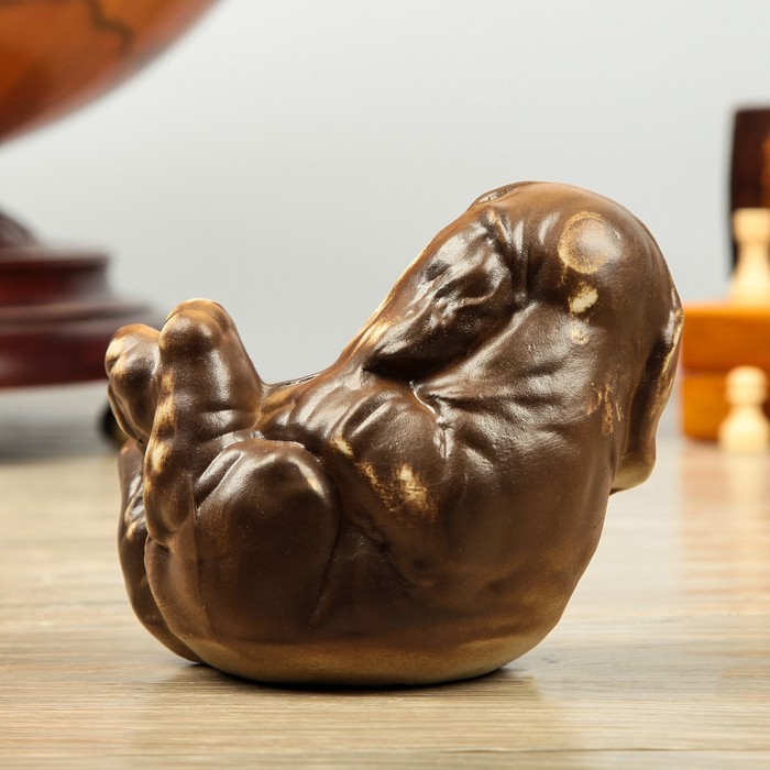 Копилка — универсальный вариант подарка любому человеку, ведь каждый из нас мечтает о какой-то дорогостоящей вещи и откладывает или собирается откладывать деньги на её приобретение. Вместительная Статуэтка "Собака на спине", шамот станет прекрасным хранителем сбережений и украшением интерьера. Она выглядит так ярко и эффектно, что проходя мимо, обязательно захочется забросить пару монет.